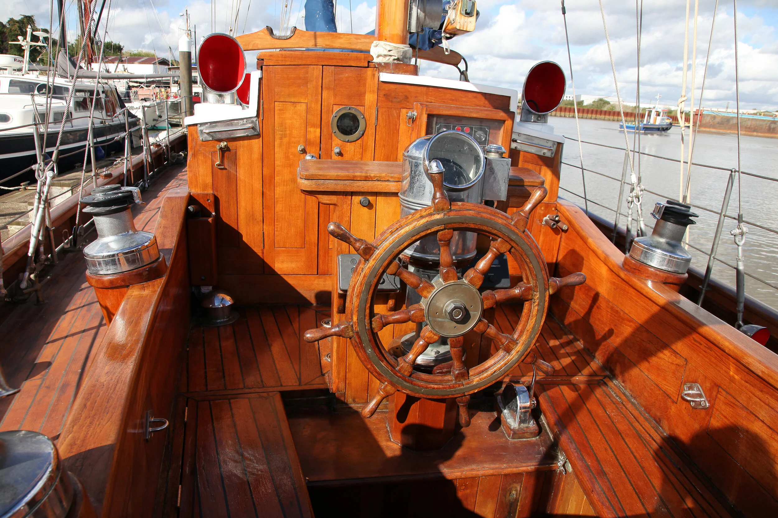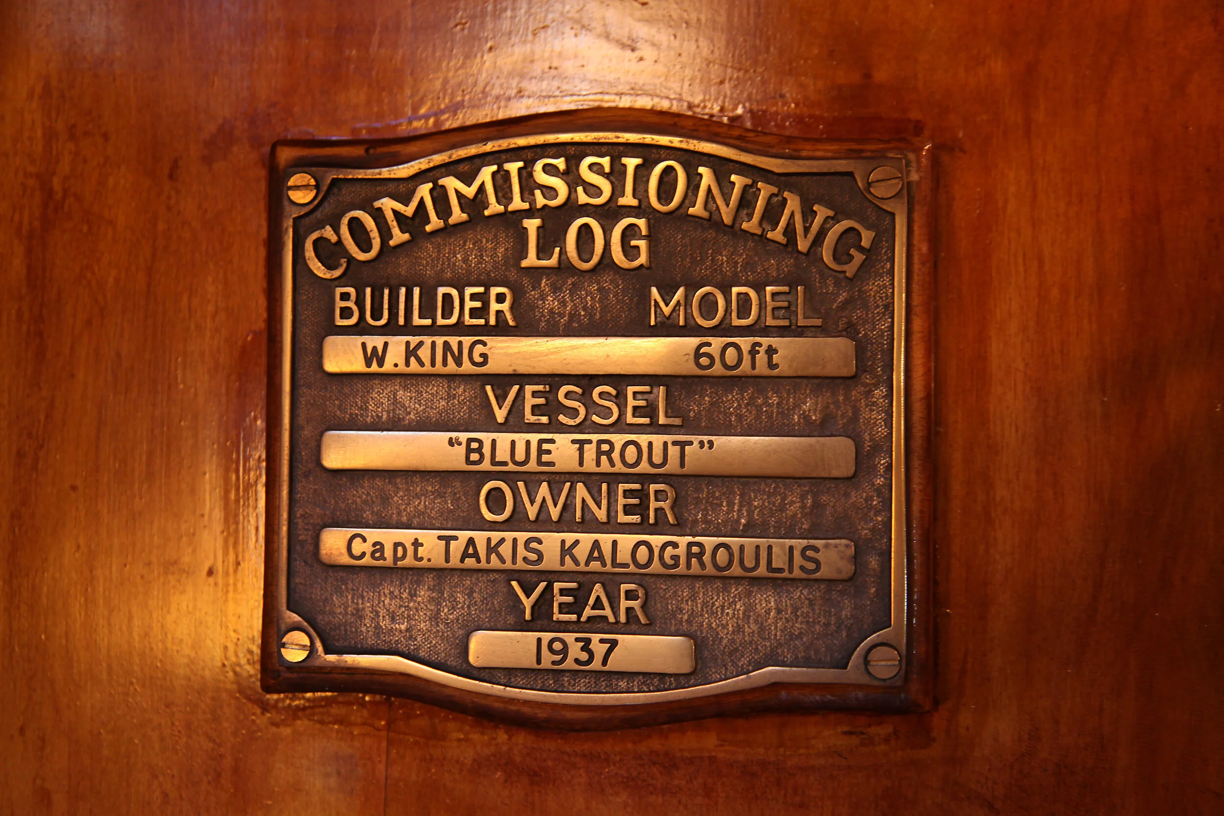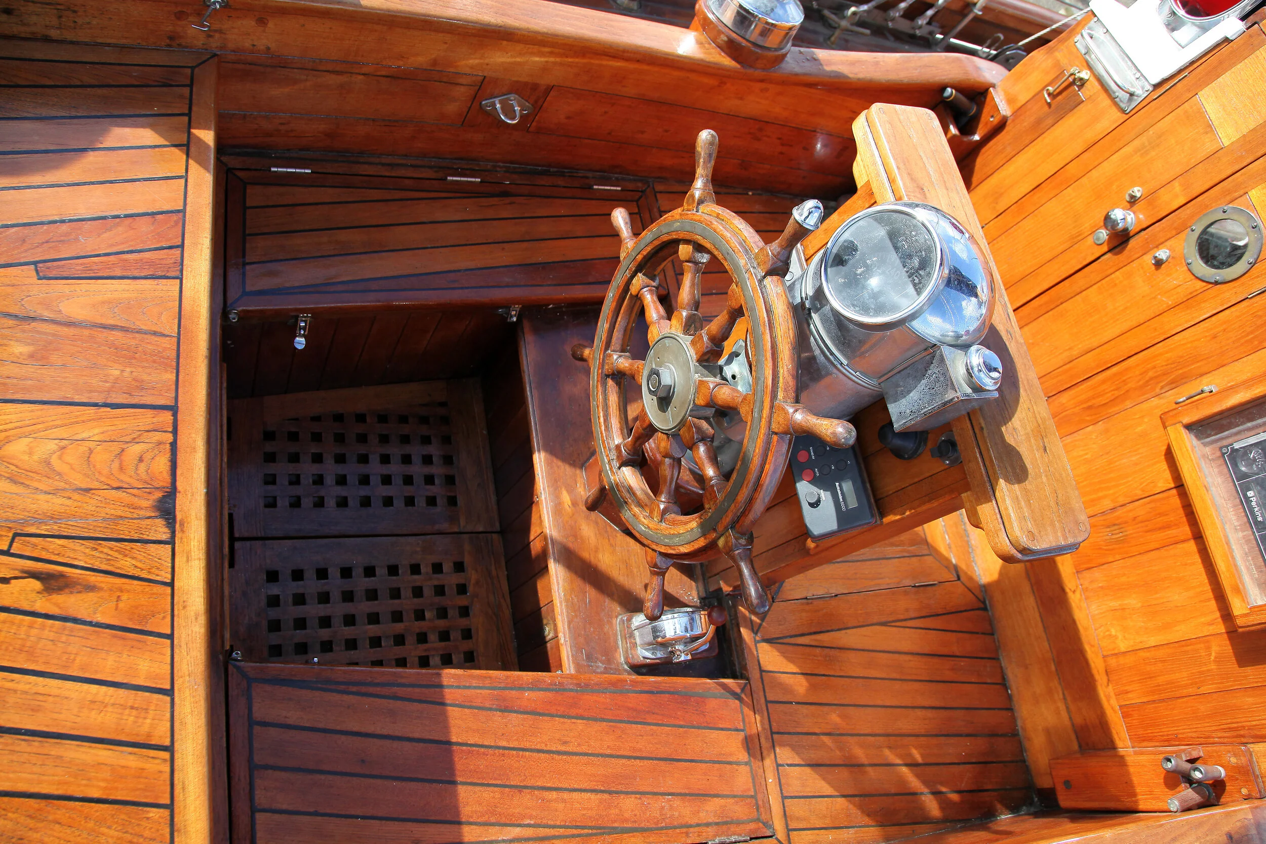 Built in teak on oak sawn and steamed frames designed by Norman Dallimore and built by British yard William King & Sons at Burnham on Crouch in 1937 has a varied and interesting history. Her keel was initially laid in 1937. Town Cup winner in 1938 with Normand Edward Dallimore at the helm, between 1947 and 1965 she had a number of owners and was cruising in the Mediterranean. Blue Trout was originally a single masted cutter with a bowsprit, but in 1965 she was bought by Captain Michel Fuega who converted her to a ketch.One of the truly unique things about Blue Trout is the 2 inch genuine Burmese teak planking on her hull and decks laid over 3 inch English oak frames. Burmese teak is now unavailable and irreplaceable, making this boat a true jewel. The hull is sheathed in copper. She was one of the most comfortable and luxurious cruising yachts of her day, and at the time of her launch the largest yacht built at Burnham on Crouch.