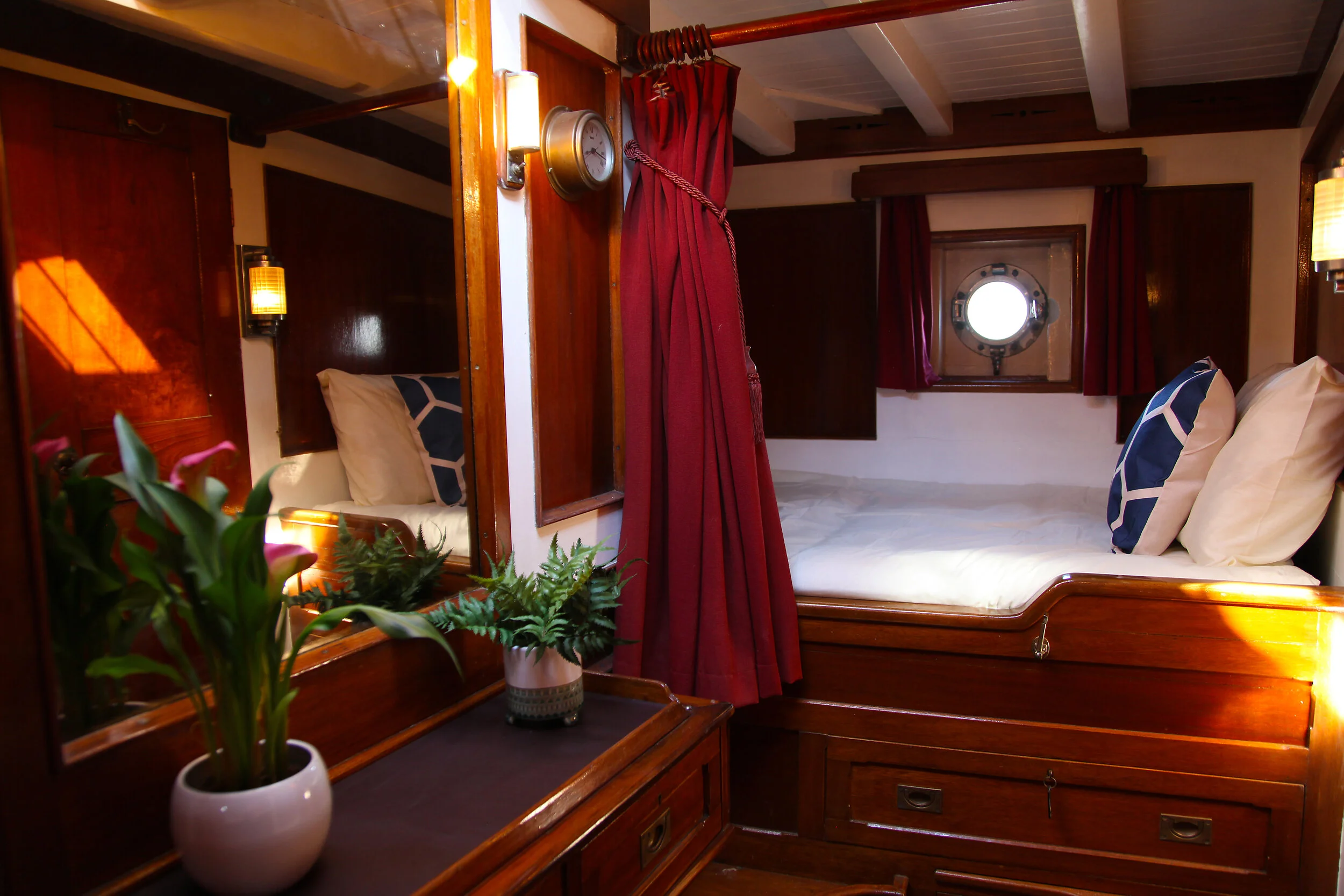 Blue Trout has 8 berths: 2 (bunks) in the bows, 2 in mid cabin (bunks) and 4 in the Captainās cabin. 2 further beds available in the saloon and another in the deckhouse. 2 showers & wcās.